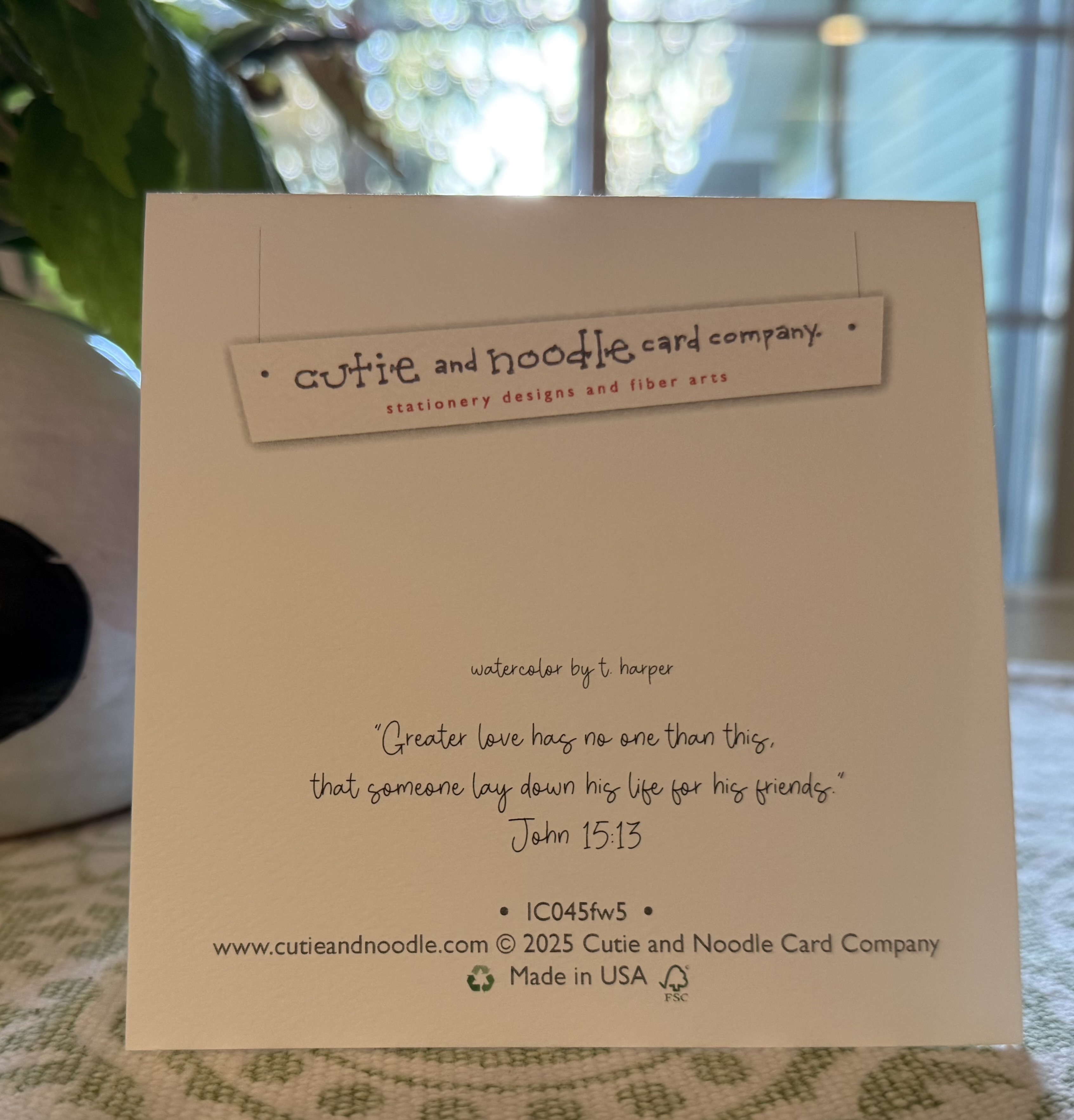 The greatest love story ever told…God’s love for us. This card could be given for a birthday,  Valentine’s Day, Easter and Christmas for family and friends that we love.
